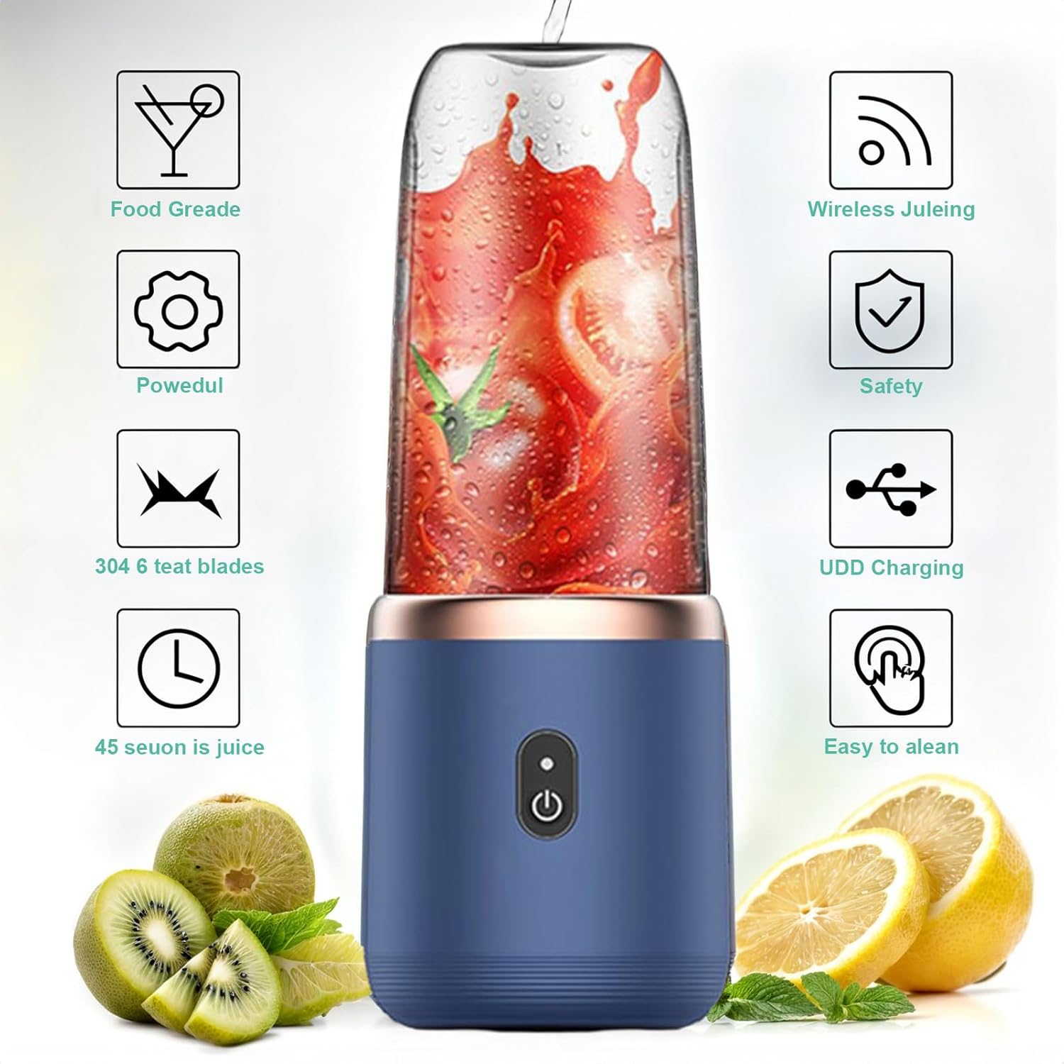 LED Indicator & Safety Lock – Ensures secure blending and battery visibility.